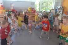 Как вы думаете, что способствует развитию координации движений и чувства ритма у детей? Что помогает им вырасти гибкими, ловкими и пластичными? Конечно же танцы! Дети первой младшей группы №12 танцуют под музыку, и сами себе напевают, и подыгрывают на музыкальных инструментах, и пытаются еще и удержать мешочки на голове во время выполнения танцевальных движений. А еще и бонус: хорошее настроение на весь день!