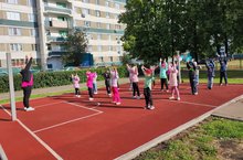 На улице стоит теплая погода. Дети большую часть своего времени проводят на улице. А это значит, что день начинается с зарядки на свежем воздухе. Утренняя гимнастика является ценным средством оздоровления и воспитания детей. У детей систематически занимающихся утренней гимнастикой пропадает сонливое состояние, появляется чувство бодрости, наступает эмоциональный подъём повышается работоспособность. А также утренняя гимнастика воспитывает волевые усилия, вырабатывает настойчивость, дисциплинирует детей. -