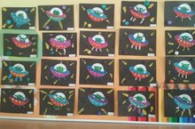 Сегодня во всех группах была организована выставка рисунков, поделок, аппликаций в честь дня Космонавтики!