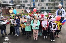 Торжественное мероприятие, посвященное дню Победы, в который входила акция «Бессмертный полк», прошло на территории детского сада. Дети спели песни о войне, читали красивые стихотворения, почтили героев минутой молчания, прошли круг почета с портретами ветеранов ВОВ, с цветами, шарами, голубями.