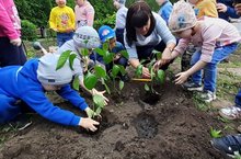 В нашем детском саду прививают любовь и заботу к работе, растениям у детей с раннего возраста. Детишки с удовольствием помогают воспитателям сажать и поливать растения.