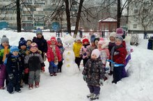 Одеваются дворики, улицы.А наши ребята не растерялись и ... построили вот такого снеговичка! Мартовский снеговик от группы №1.