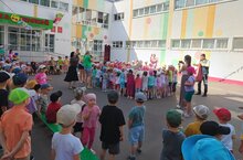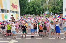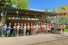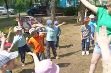 На фотографии совместный летний флэшмоб 1, 10, 12 групп. -