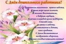 Уважаемые работники нашего детского сада. Поздравляем Вас с профессиональным праздником - Днем дошкольного работника! Спасибо Вам за вашу продуктивную деятельность на выбранном поприще. Пусть работа приносит вам ту отдачу, которую вы от нее ожидаете. И пусть ваши добрые ожидания будут оправданными, цели- достигнутыми, планы реализованными! Здоровья Вам и счастья!