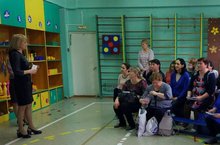 На базе ДОУ была организована стажировочная площадка с открытым просмотром ООД в подготовительной группе № 10 ФФН .Воспитатель Султанова Л.Р. показала ООД по теме: " Волшебные опыты" (тылсымлы тәҗрибәләр). Воспитатель средней группы № 8 Хайруллина Л.М выступила по теме : "Мәктәпкәчә яшьтәге балаларга милли тәрбия бирү системасы"