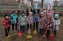 Балалар белән бакчабыз территориясен чистартырга чыктык.