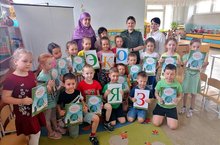 "ЭКОЯЗ-2022" акциясе кысаларында тәрбияче Рахматуллина Альбина Рафаэлевна белән берлектә экология темасына шөгыль үткәрелде. Анда Татарстан республикасы экология һәм табигый ресурслар министрлыгының Кама буе территориаль идарәсе белгече Галимова Ләйлә Назир кызы һәм Яр Чаллы шәһәре муниципаль автономияле өстәмә белем бирү учреждениесе" 4 нче санлы балалар экологик-биология үзәге" методисты Галиәкбәрова Ләйсән Ринат кызы чакырылды. Шөгыль барышында җир шары кешеләрнең битарафлыгыннан авыруын хәбәр итте табигатькә балалар эксперименталь эшләнчек аша ярдәмгә килделәр.