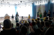 Бүген 82 нче балалар бакчасында театр атналыгы кысаларында 1,5,12 төркем балалары үзләренең кечкенә иптәшләренә әзерләнгән әкиятләрен сәхнәләштереп күрсәттеләр.