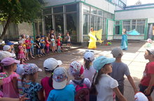 Для детей было организовано развлечение "День природы" с загадками,играми,соревнованиями. Гостем развлечения был Карлсон,который загадывал загадки,шутил. А итогом мероприятия было рисование цветными мелками на асфальте.
