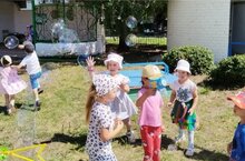 Улыбки и смех заполнили нашу площадку, когда дети с восторгом надували мыльные пузыри, пытались поймать и, конечно же, лопали их с большим наслаждением.