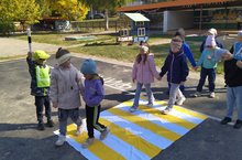 19 сентября дети подготовительных групп № 2,9 (26 детей) разбирали и отрабатывали ситуации по безопасному движению на детской площадке: как правильно переходить пешеходный переход пешеходам, на какой сигнал можно переходить дорогу, разбирали дорожные ловушки, отвечали на вопросы ведущего.