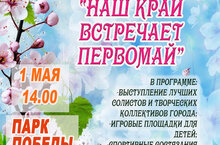 1 мая в 14.00 в парке Победы состоится праздничная программа "Наш край встречает Первомай. В программе: выступление творческих коллективов города, работа игровых спортивных площадок для детей, акция "Георгиевская ленточка". Ждём Вас на мероприятии.