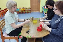 На мастер- классе музыкального руководителя Михайловой С.Ю. простые втулки из- под бумаги стали музыкальными инструментами и для участников творческой встречи. Опробовали звучание с разным наполнением и были поражены тем, как много разных звуков смогли создавать с помощью этих простых инструментов. Каждый украсил свой инструмент цветным скотчем. Таким образом, создав свой индивидуальный шумовой инструмент. -