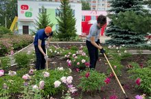 В ГБОУ "Набережночелнинская школа № 67" летнюю трудовую практику проходят обучающиеся старших классов. Ведутся следующие работы: прополка, полив, окапывание кустарников.