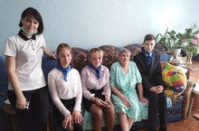 В рамках городской акции "Серебряный возраст" тимуровский отряд "Непоседы" посетил и поздравил с праздником Евсикову Валентину Фоминичну.