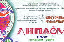 Педагоги ГБОУ "Набережночелнинская школа №67"Марханова З.Р. награжден дипломом (3 место) , Фаизова Алсу Иршатовна (диплом 2 место)в Республиканском конкурс-выставке декоративно-прикладного творчества "Цветочный фейерверк".