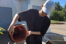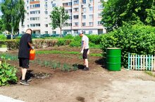Обучающиеся трудовой бригады совместно с педагогами занимаются благоустройством территории.