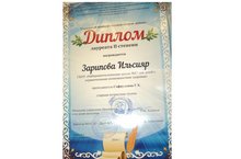 Ученица 7б класа Зарипова Ильсияр награждена Диплом лауреата II степени.