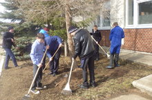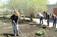 Работа в рамках двухмесечника по благоустройству и озеленению территории школы 06.05.2015