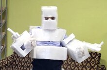 Обучающийся 6а класса дает "вторую жизнь" пенопласту, создавая вот такие тематические костюмы.