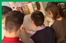 9б и 7а изучили информационный стенд, посвящённый Году защитника Отечества.
