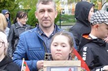 К ним присоединились педагоги, родители и ученики. Многие не смогли сдержать слез, видя, как хрупкая девочка с особыми потребностями несет портрет брата-героя.