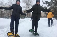 12.01.2024 года обучающиеся 9 класса осваивают снегоступы на уроке физической культуры.