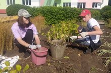 Цветочное озеленение территории школы проходит при помощи педагогов и обучающихся трудовой бригады.