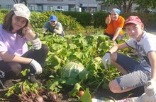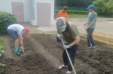 Обучающиеся школы, трудоустроенные на август месяц пропалывают школьный огород
