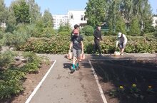 13.06.2023 г. обучающиеся работают на территории школы, ведётся благоустройство.