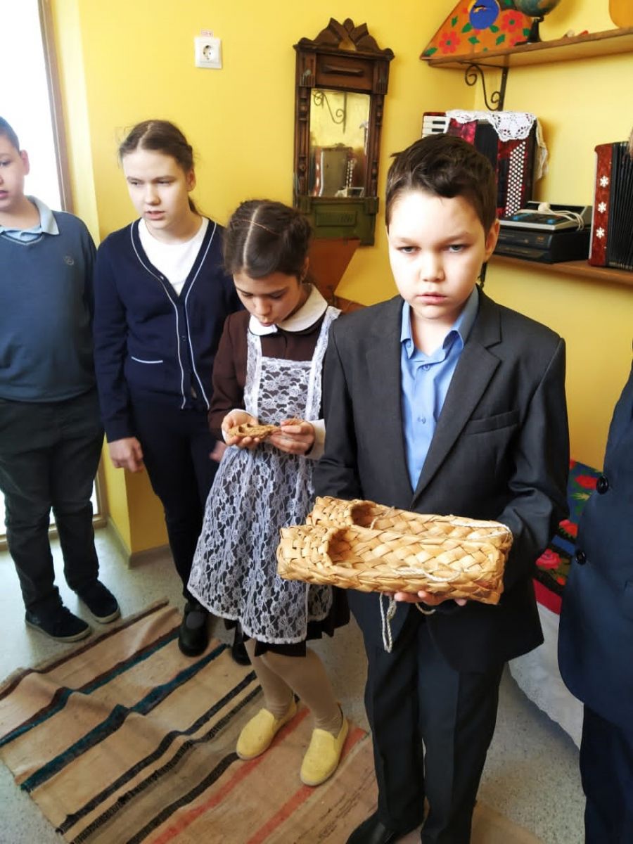 Опубликовано: 18.03.2021Учащиеся 6 Б класса посетили школьный музей истории культуры и быта татарского народа. Руководитель музея рассказала детям об истории происхождения предметов быта. Дети ознакомились со старинными экспонатами (старинные лампы, прялка, патефон и т.д.).