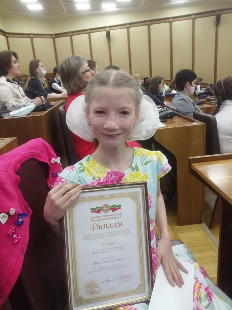 Опубликовано: 30.04.2021Обучающаяся 4 класса стала победителем конкурса рисунков "Парламентский урок". Награждение проходило в г. Казань.