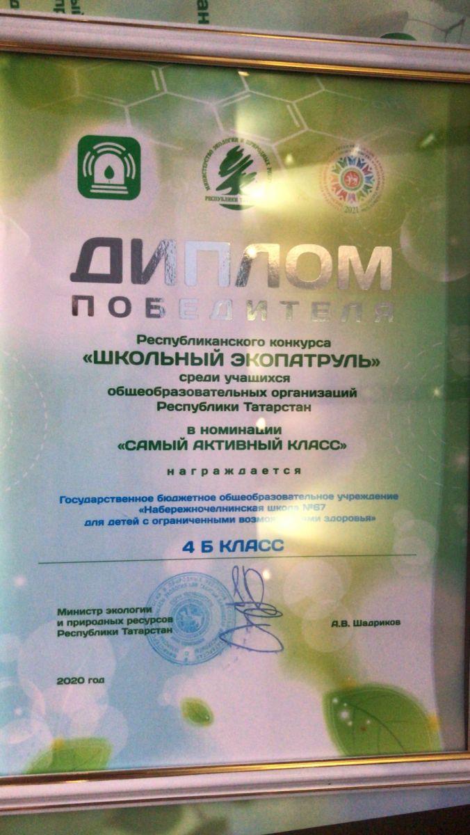 Опубликовано: 30.11.2021Поздравляем классного руководителя и 4 Б класс победителей Республиканского конкурса " Школьный экопатруль" среди учащихся общеобразовательных организаций по РТ в номинации "Самый активный класс".