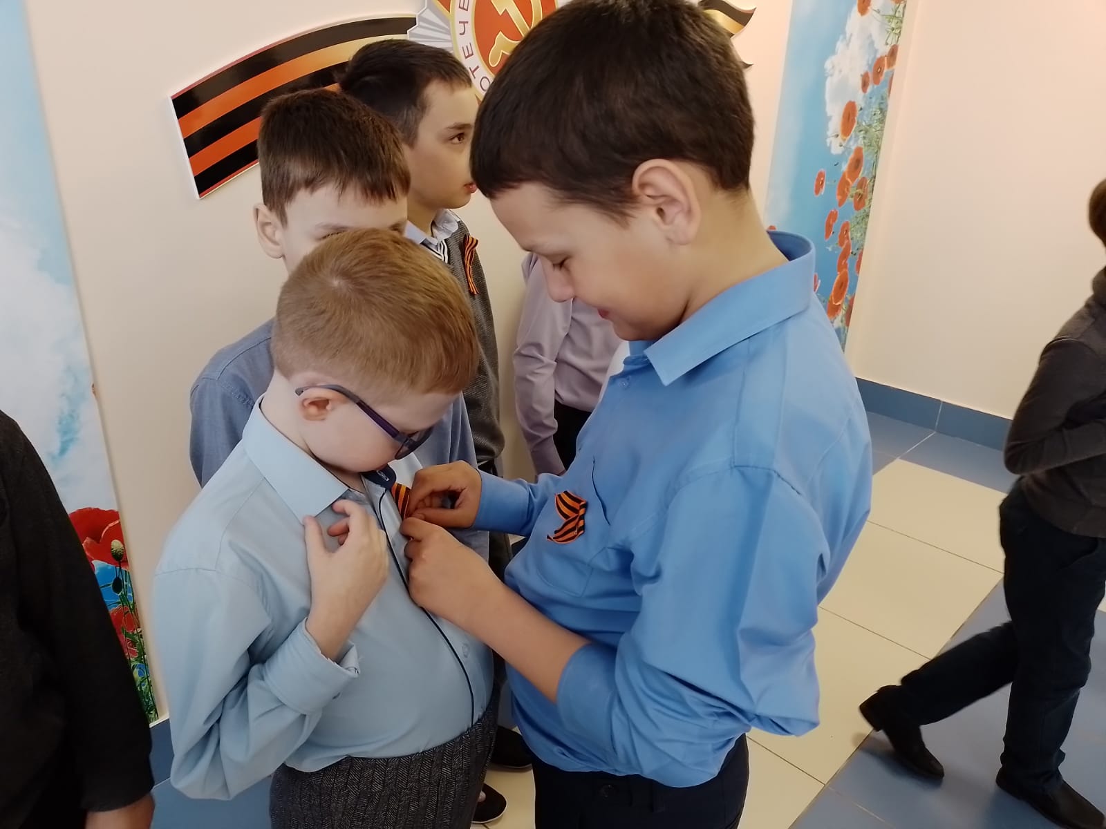Опубликовано: 25.04.202225.04.2022 года стартовала акция "Георгиевская лента". Тимуровский отряд " Непоседы " вручил ленты обучающимся 1а,1б классов.