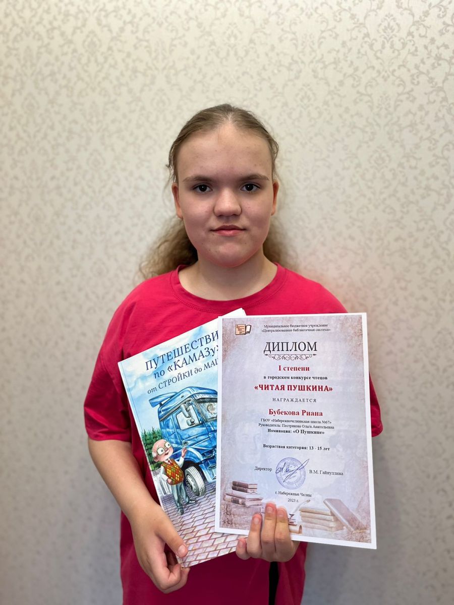 Риана обучающаяся 6а класса заняла 1 место в городском конкурсе "Читая Пушкина"