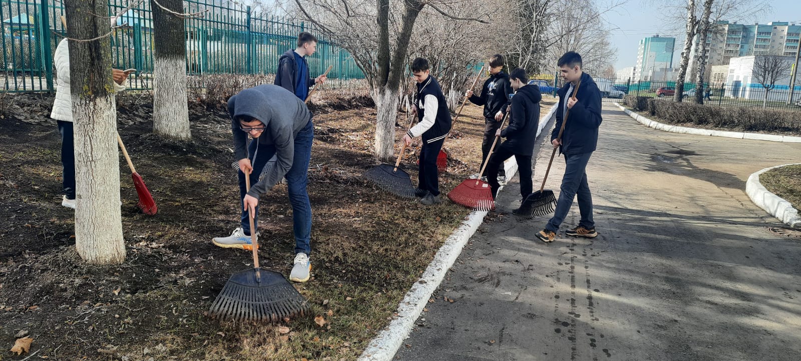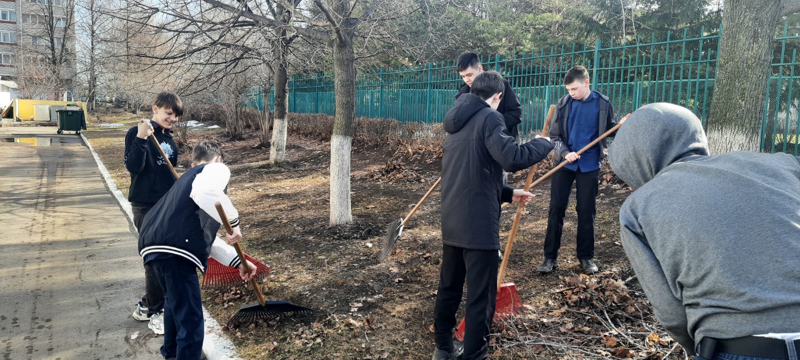 Уборка территории школы полным ходом