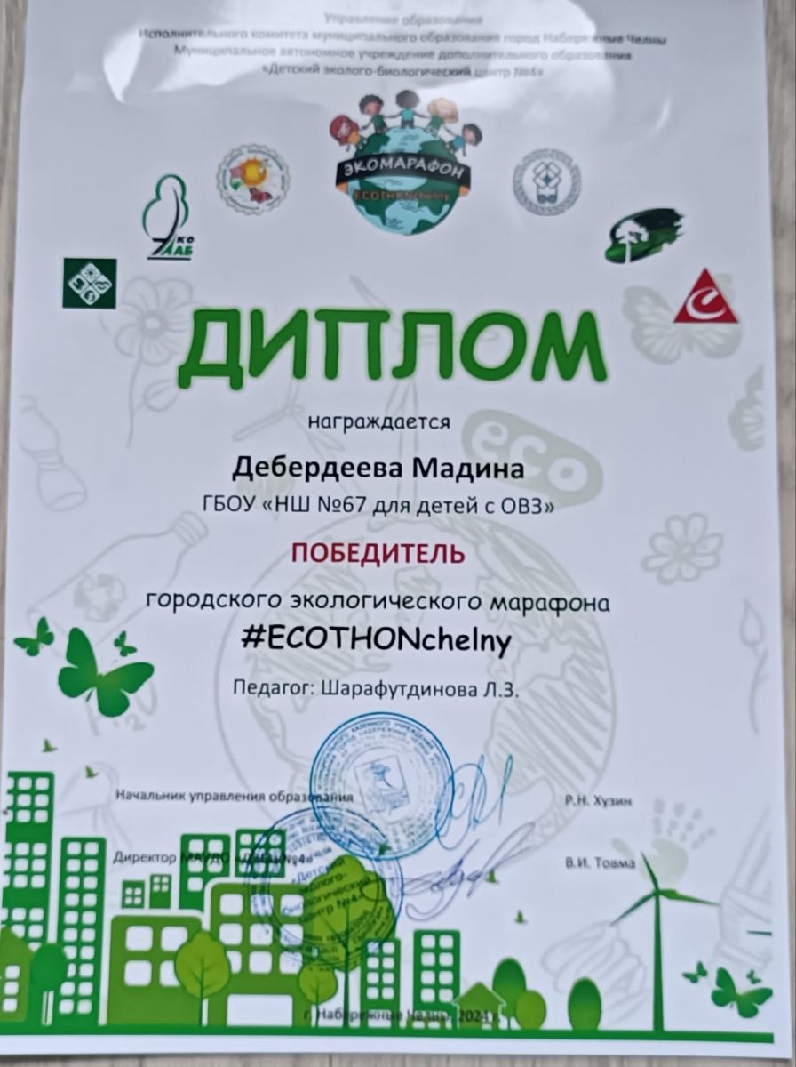 Ученица нашей школы, Дебердеева Мадина стала победителем по итогам "Экомарафона", который длился весь учебный год.