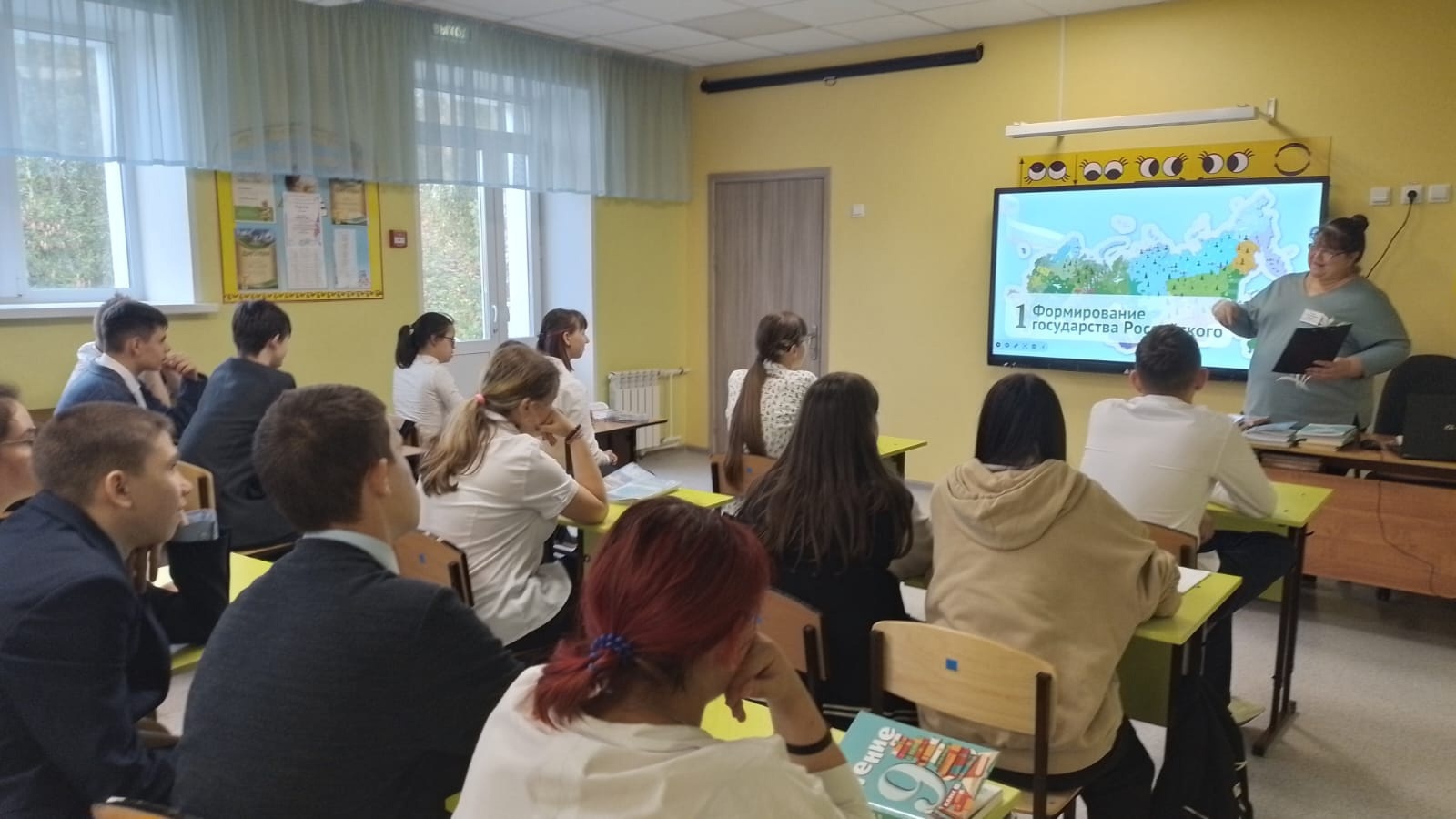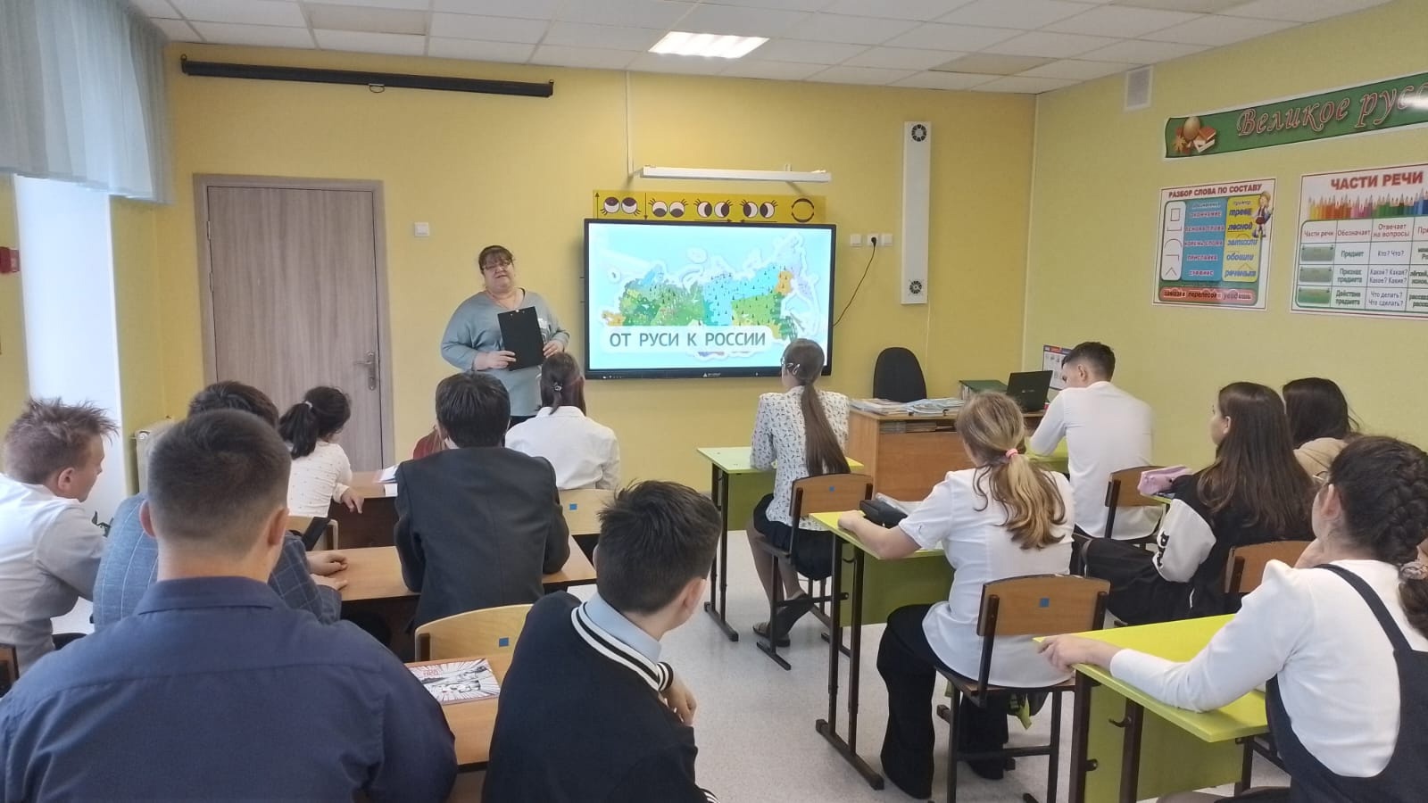 В нашей школе советником по воспитанию Еленой Владимировной Барламовой проведена интеллектуальная игра «От Руси к России» для 8-9 классов. Ребята ознакомились с видеофрагментами интервью