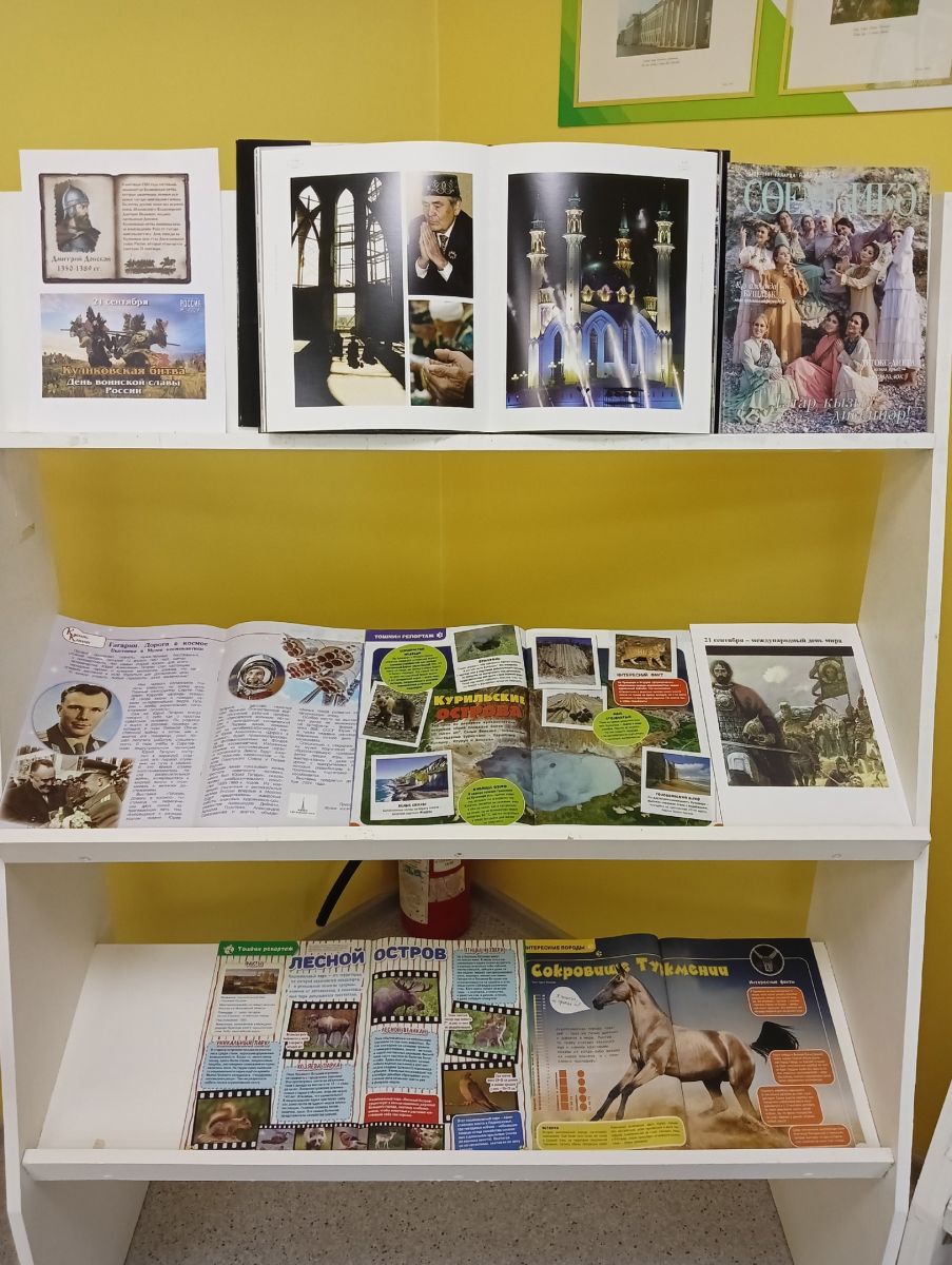 видеороликов «ДНК России». Школьный библиотекарь Ольга Николаевна Кудимова подготовила выставку кних и журналов о красоте нашей Родины, научных достижениях и знаменитых людях, служивших во славу Отечества.