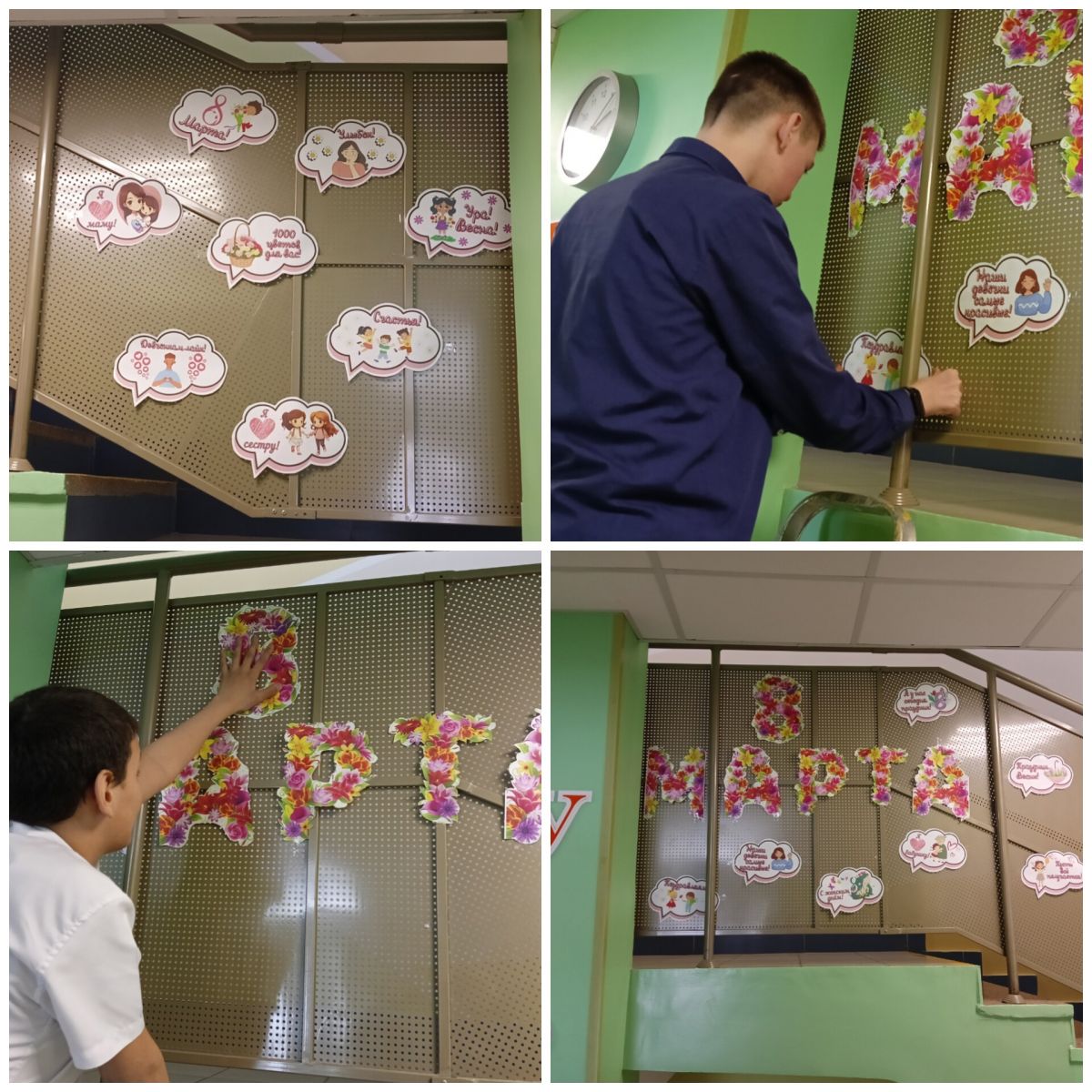 В преддверии Международного женского дня ученики 8а класса Камиль и Камал оформили холл школы, а классные