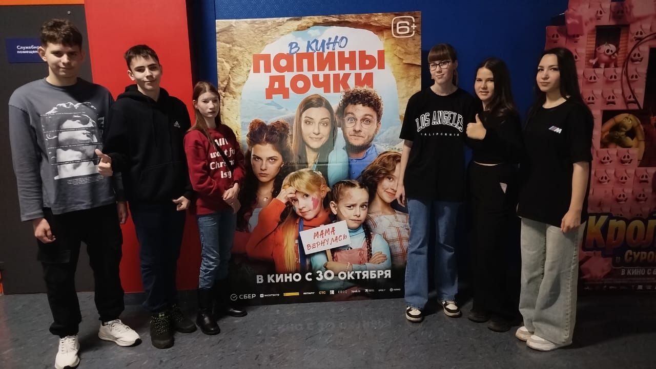 Опубликовано: 30.10.2025Обучающиеся ГБОУ "Набережночелнинской школы №67" 9а и 9б классов сходили в кино "Папины дочки. Мама вернулась" по Пушкинской карте.
