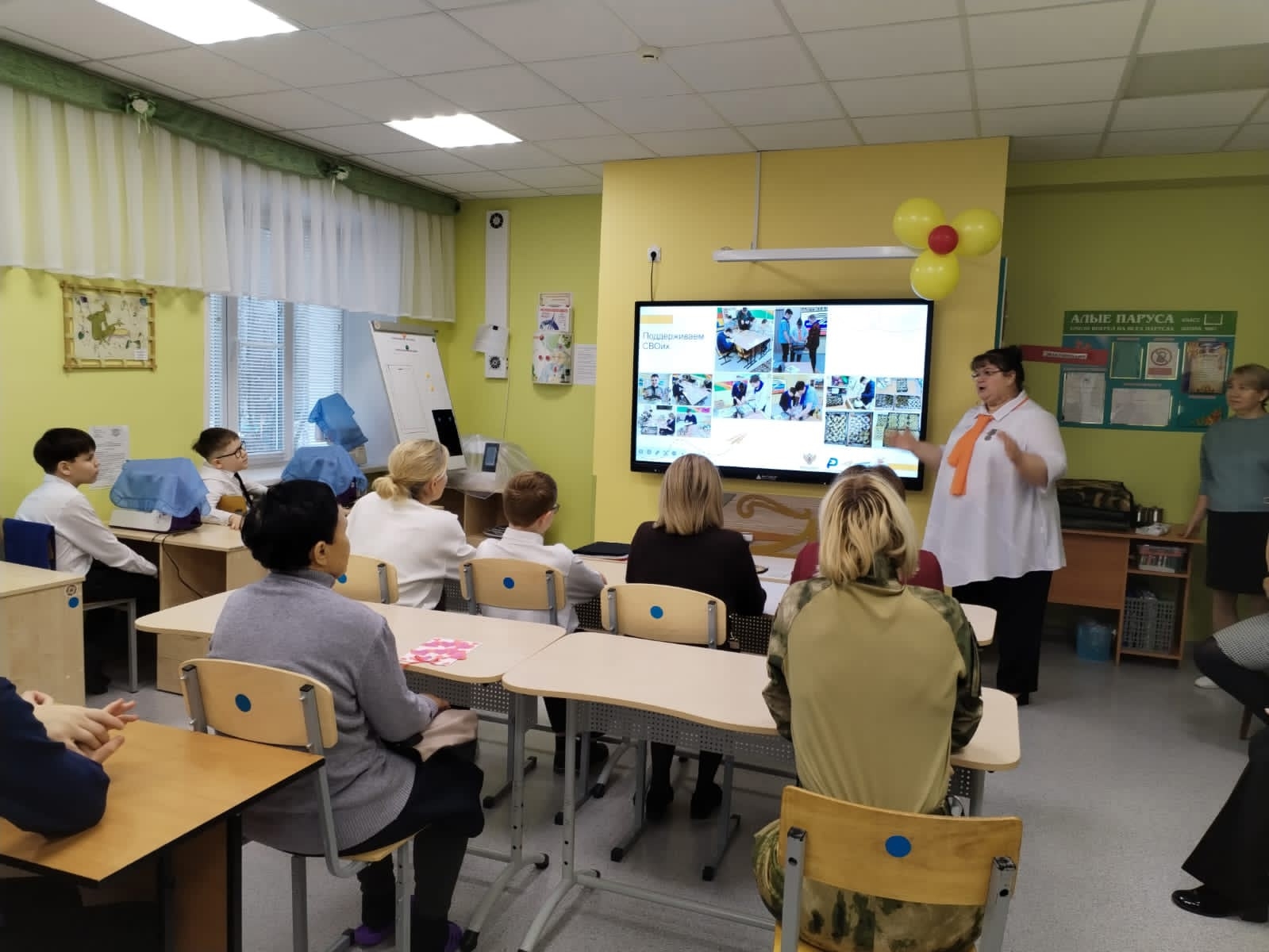 Обучающиеся старших классов оформили холл к празднованию Дня матери. В рамках запланированной праздничной программы, советник директора по воспитанию Елена Владимировна Барламова провела мастер-класс с мамами 5-х классов по изготовлению антидронового покрывала/одеяла. Такие одеяла спасают наших воинов в зоне специальной военной операции. Они обладают свойствами: теплоизоляции, скрытие температуры, комуфляж. Бойцы ими укрывают раненого, чтобы коптеры с тепловизорами его не обнаружили, ими закрывают вход в блиндажи, такие покрывала берут с собой когда идут на задание.