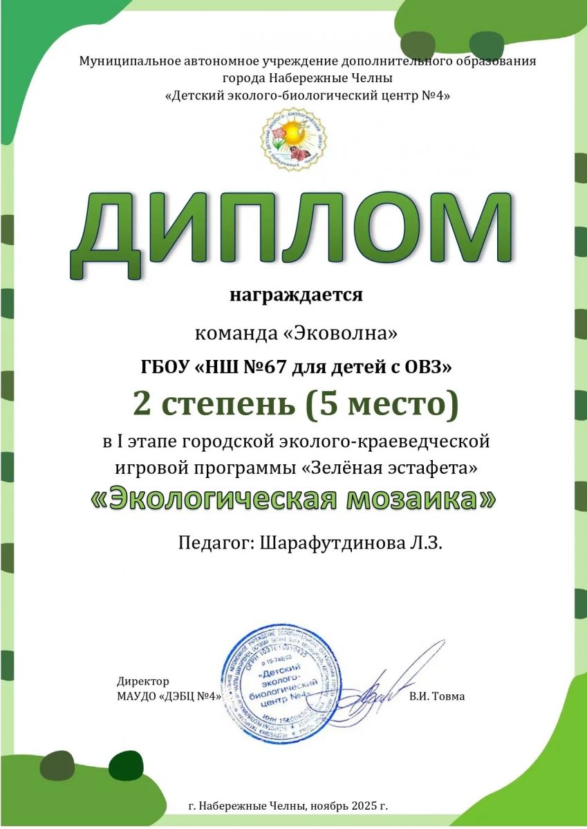 Обучающиеся ГБОУ "Набережночелнинской школы №67" приняли участие в I этапе городской эколого-краеведческой игровой программе «Зеленая эстафета» «Экологическая мозаика», посвященной 30-летию создания Красной книги Республики Татарстан.
