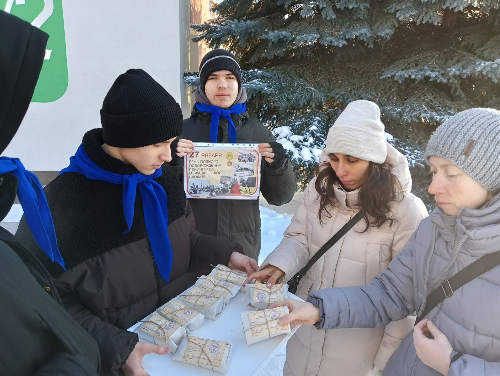 Мы провели Всероссийскую акция памяти "Блокадный хлеб". Акция посвящена истории обороны и блокады Ленинграда в ходе Великой Отечественной войны. Символ акции — небольшой кусочек хлеба весом 125 граммов — именно такой была минимальная норма выдачи хлеба в Ленинграде в самый трудный период блокады — зимой 1941–1942 годов.