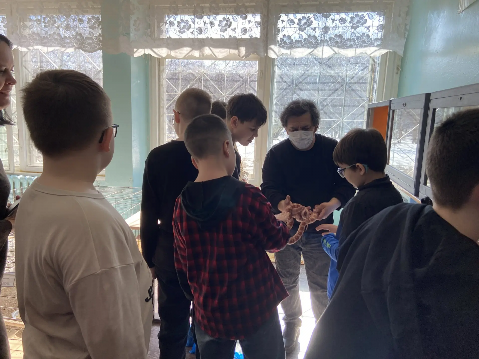 Опубликовано: 31.03.2026Сегодня учащиеся 1б, 5а, 8б классов побывали на экскурсии в МАУДО «Эколого‑биологический центр N4” — и это стало настоящим приключением для наших юных исследователей!