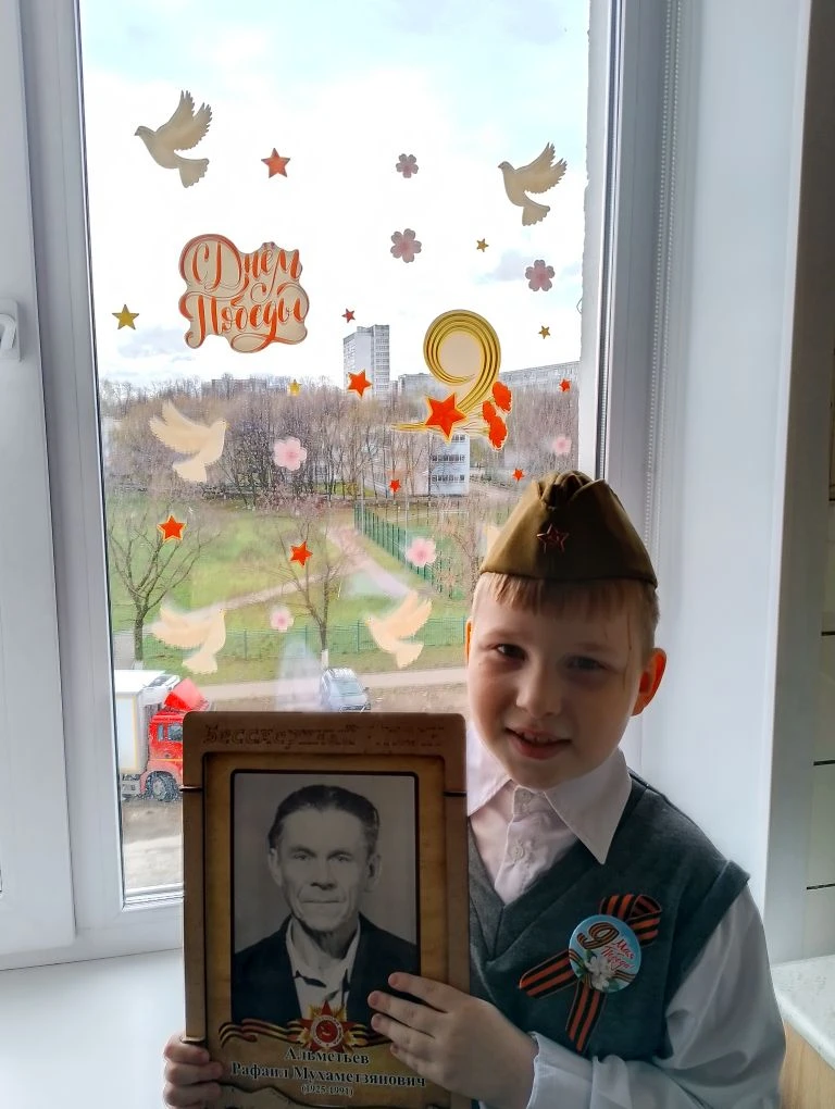 Опубликовано: 21.04.2026Акция " Окна Победы" - это галерея памяти и благодарности нашим ветеранам и участникам Великой отечественной войны. Ученик 1 г класса Валиулов Константин впервые принял участие в этой акции. Каждая семья хранит в памяти историю тяжёлых испытаний, лишений, потерь. Мы помним все, мы помним ту победную весну. Спасибо за победу!