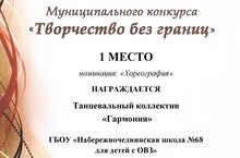 Ученики нашей школы 9А, 8А и 7 А класса, танцевальный коллектив "Гармония", принял участие в муниципальном конкурсе "Творчество без границ"