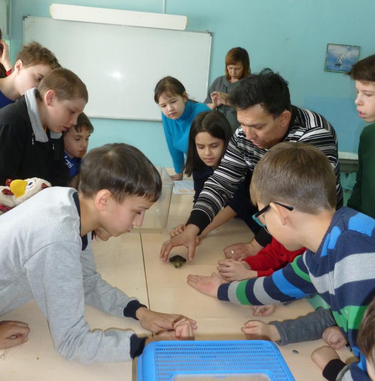 Опубликовано: 22.03.2017Согласно плану воспитательной работы с учащимися на весенние каникулы, 22.03.2017г. ученики 6а,6б классов под руководством педагогов Акбировой Г.Т. и Халиуллиной Л.Ф. посетили Детский эколого-биологический центр №4. Для детей была организована экскурсия «Живой уголок», в ходе которой ребята смогли понаблюдать за рыбами, птицами, пресмыкающимися, грызунами, а также послушать рассказ о них. Ребятам экскурсия понравилась.