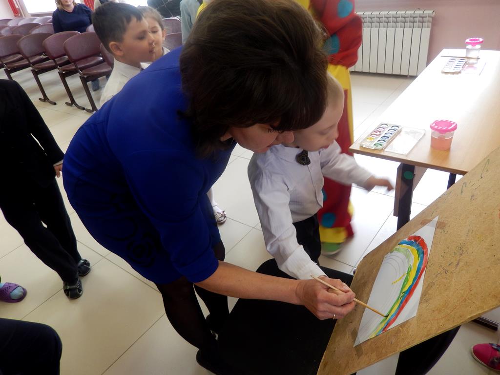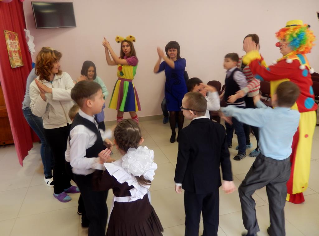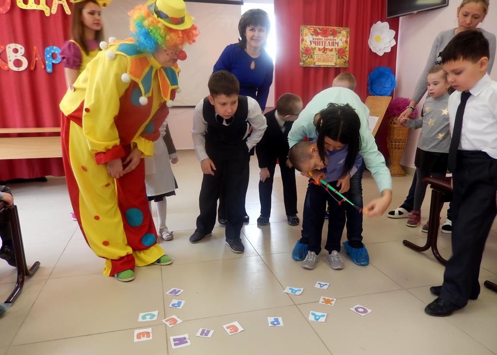 У детей была возможность нарисовать улыбку на воздушном шарике, показать знание вежливых слов, умение придумывать слова на заданную букву, рисовать разноцветную радугу, поиграть в игру «Рыбалка», где учащимся нужно было с помощью удочки поймать «рыбку», на которой написана буква, и назвать её. В конце мероприятия ребята танцевали и имитировали движения под слова песни «Муха справа, муха слева».