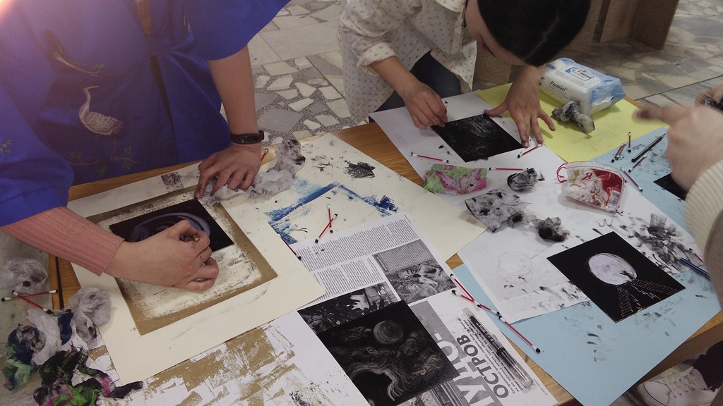 Опубликовано: 18.05.201718 мая учащиеся 6а класса с классным руководителем Халиуллиной Л.Ф. посетили Картинную галерею в рамках всероссийской акции «Ночь в музее». Дети с интересом рассматривали картины челнинских художников, любовались архитектурой города, сами создавали картинки на железных листах, порытых типографической краской.